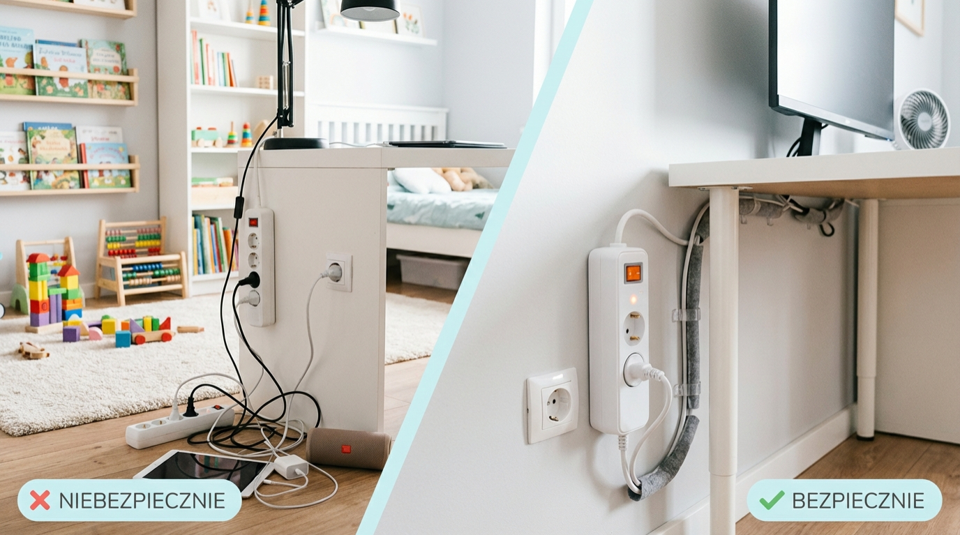 Elektronika w pokoju dziecka to standard, ale kable mogą stanowić poważne zagrożenie. Dziecko może je ciągnąć, gryźć lub się o nie potknąć.