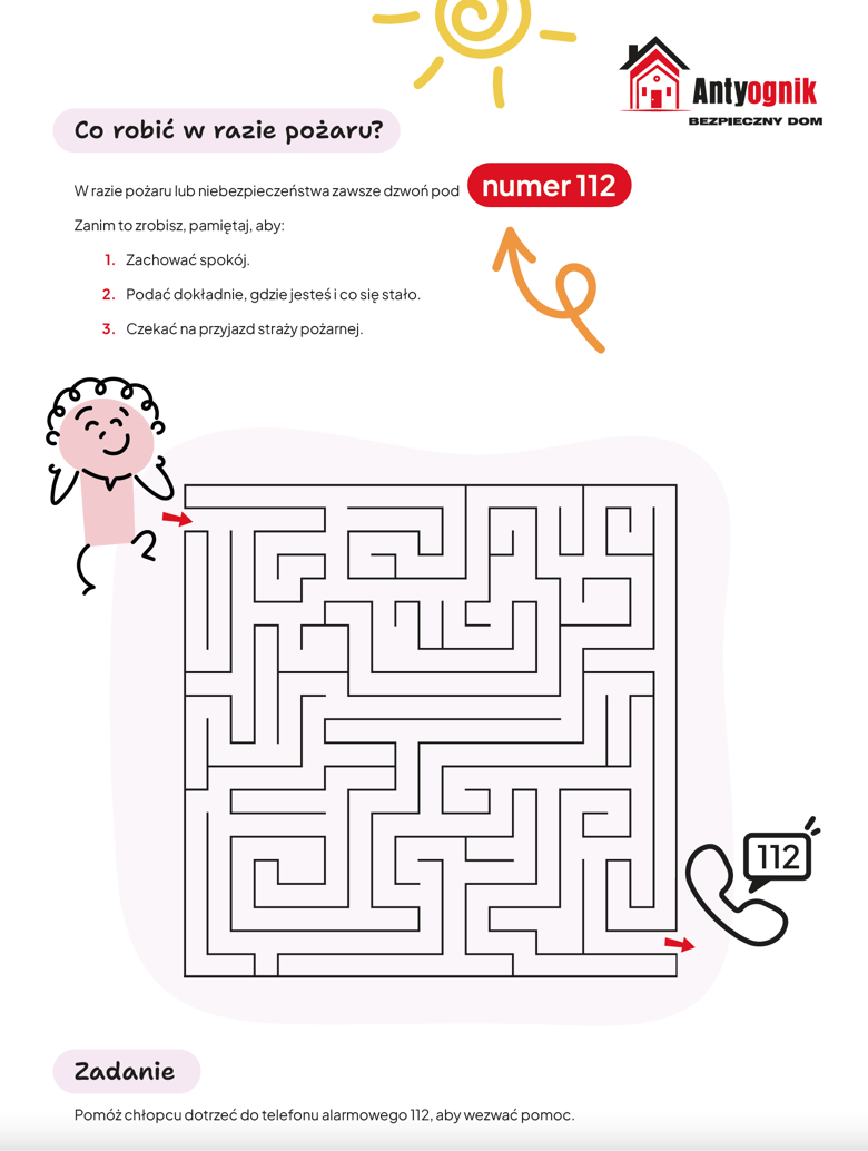 Edukuj dzieci przez zabawę dzięki drukowanym ćwiczeniom i zabawom dla Twojego dziecka. Numer 112 znać każdy powinien. Twoje dziecko może się do niego przyzwyczajać poprzez rysunek w labiryncie.